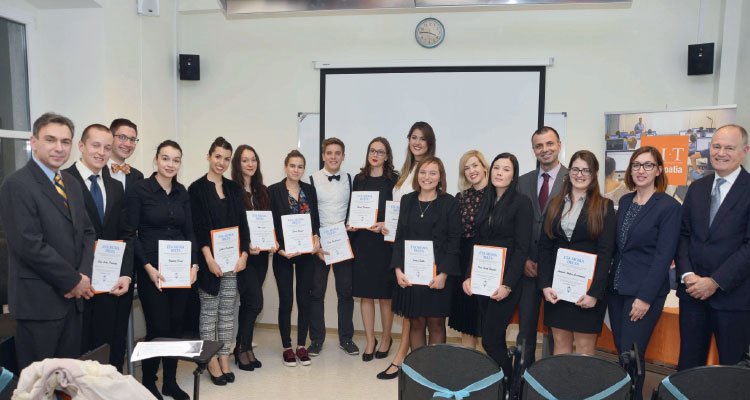 Elf Studierende des Bachelor-Programms in Management im Tourismus, Gastgewerbe und Dienstleistungssektor von RIT Kroatien wurden letzte Woche bei einer feierlichen Veranstaltung in die ehrenvolle internationale Studentengesellschaft Eta Sigma Delta aufgenommen. Die 1978 von Studierenden der University of New Hampshire gegründete Gesellschaft hat mittlerweile über neunzig aktive Kapitel weltweit. Das neu gegründete Kapitel an RIT Kroatien ist das erste seiner Art in diesem Teil Europas. Die Gesellschaft ist ein Zweig der renommierten internationalen Vereinigung von Hochschulen, die Programme im Gastgewerbe und Dienstleistungssektor durchführen – ICHRIE. Im Rahmen ihrer Arbeit bringt ICHRIE die akademische Gemeinschaft und Fachleute auf diesem Gebiet zusammen, um die neuesten Erfahrungen und Erkenntnisse auszutauschen.